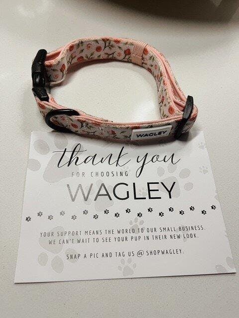 The cutest collar - very soft, beautiful print, and perfect for our stylish Coco puff! Can't wait to order and try the harness. Love the attention to detail.